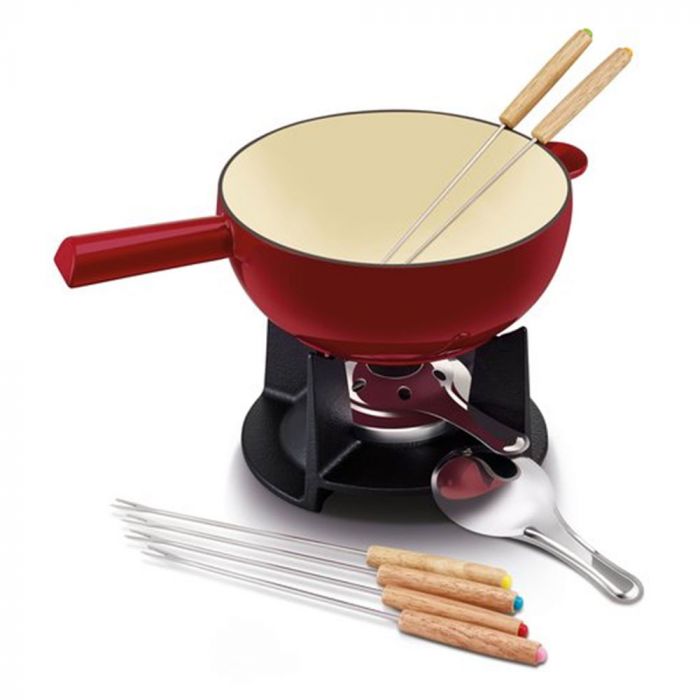 Le Service à Fondue Belledone de Beka est en fonte de fer avec revêtement intérieur et extérieur émaillés. Il se compose de 6 fourchettes à fondue avec manches bois, 1 caquelon en fonte, 1 réchaud, 1 brûleur. Il vous permettra de passer un excellent moment de convivialité dans la pure tradition savoyarde.